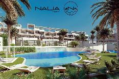 PISO EN AV DENIA, LOS BALCONES LOS ALTOS DEL EDÉN. Este espléndido bungalow se encuentra en una de las zonas más exclusivas de Torrevieja, ofreciendo un estilo de vida cómodo y lujoso. Con una orientación noroeste que garantiza luz natural durante gran parte del día, la propiedad cuenta con 179 m² distribuidos de manera funcional y encantadora. Dispone de dos habitaciones dobles, siendo una de ellas una suite, ideal para disfrutar de la privacidad y el descanso. El corazón del hogar es un amplio salón de concepto abierto, con una moderna cocina integrada que totaliza 55 m², perfecto para la vida familiar y el entretenimiento. La casa cuenta con dos baños completos, cada uno equipado con plato de ducha, lo que añade comodidad y funcionalidad. Además, el inmueble se completa con un atractivo solárium de 86 m², donde podrás relajarte y disfrutar de las vistas. La terraza cubierta de 19 m² es ideal para cenas al aire libre o simplemente para disfrutar de las agradables temperaturas de la costa. La finca también incluye un garaje, lo que proporciona un espacio de estacionamiento seguro y cómodo. Este bungalow, situado en una finca de una planta, es perfecto para quienes buscan un hogar sin escaleras y con espacios amplios.